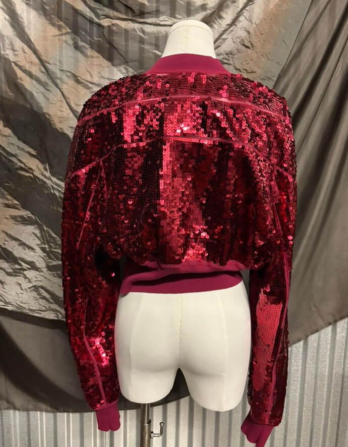 – Ruby red sequin cropped jacket